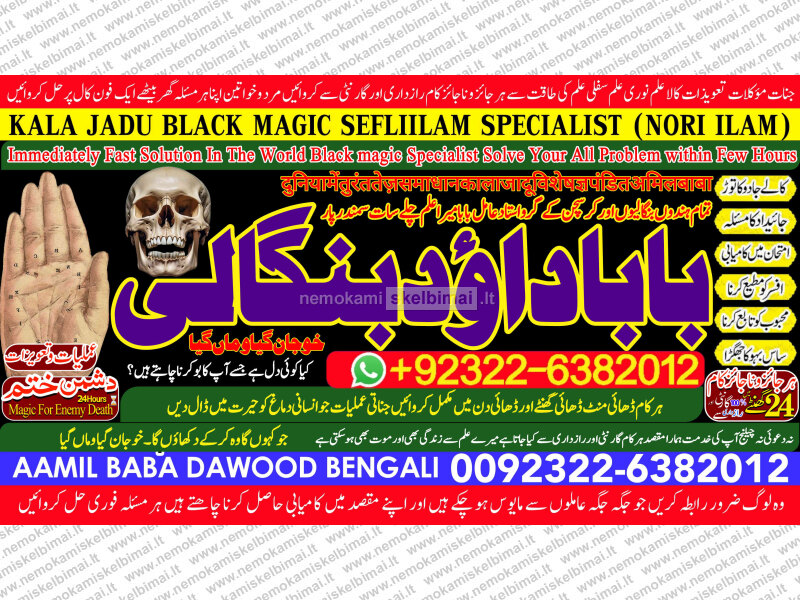 Amil Baba Dawood Bangali { PAK: 0322-6382012 ---- UAN: 0092-322-6382012} is a renowned spiritual healer and master of ancient occult sciences, specializing in Black Magic, Sephi Ilam, Nori Ilam, and Voodoo Spells. With decades of experience in the mystical arts, he has gained a reputation as a powerful and trusted guide for those seeking solutions to life's most challenging problems.
