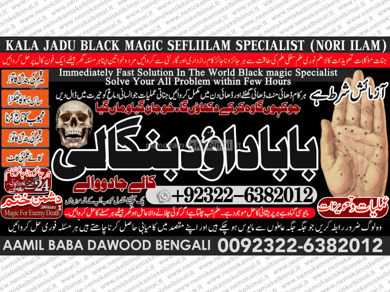 Amil Baba Dawood Bangali { PAK: 0322-6382012 ---- UAN: 0092-322-6382012} is a renowned spiritual healer and master of ancient occult sciences, specializing in Black Magic, Sephi Ilam, Nori Ilam, and Voodoo Spells. With decades of experience in the mystical arts, he has gained a reputation as a powerful and trusted guide for those seeking solutions to life's most challenging problems.