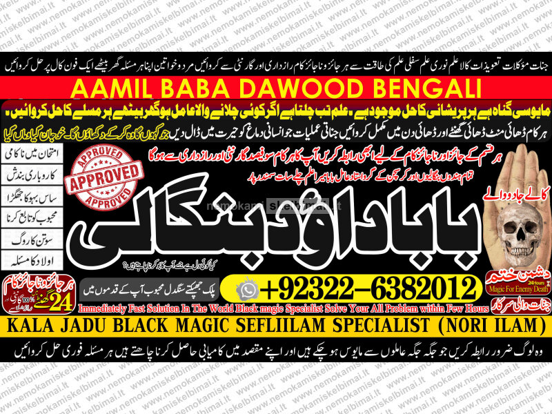 Amil Baba Dawood Bangali { PAK: 0322-6382012 ---- UAN: 0092-322-6382012} is a renowned spiritual healer and master of ancient occult sciences, specializing in Black Magic, Sephi Ilam, Nori Ilam, and Voodoo Spells. With decades of experience in the mystical arts, he has gained a reputation as a powerful and trusted guide for those seeking solutions to life's most challenging problems.