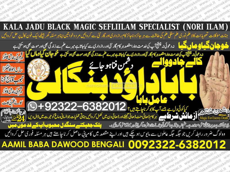 Amil Baba Dawood Bangali { PAK: 0322-6382012 ---- UAN: 0092-322-6382012} is a renowned spiritual healer and master of ancient occult sciences, specializing in Black Magic, Sephi Ilam, Nori Ilam, and Voodoo Spells. With decades of experience in the mystical arts, he has gained a reputation as a powerful and trusted guide for those seeking solutions to life's most challenging problems.