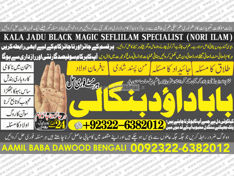Amil Baba Dawood Bangali { PAK: 0322-6382012 ---- UAN: 0092-322-6382012} is a renowned spiritual healer and master of ancient occult sciences, specializing in Black Magic, Sephi Ilam, Nori Ilam, and Voodoo Spells. With decades of experience in the mystical arts, he has gained a reputation as a powerful and trusted guide for those seeking solutions to life's most challenging problems.