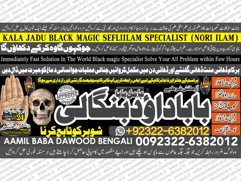 Amil Baba Dawood Bangali { PAK: 0322-6382012 ---- UAN: 0092-322-6382012} is a renowned spiritual healer and master of ancient occult sciences, specializing in Black Magic, Sephi Ilam, Nori Ilam, and Voodoo Spells. With decades of experience in the mystical arts, he has gained a reputation as a powerful and trusted guide for those seeking solutions to life's most challenging problems.