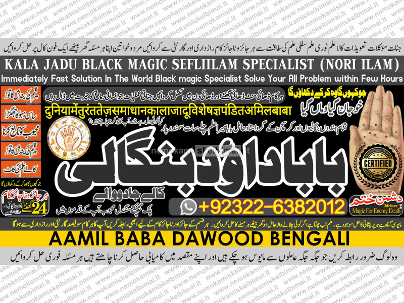 Amil Baba Dawood Bangali { PAK: 0322-6382012 ---- UAN: 0092-322-6382012} is a renowned spiritual healer and master of ancient occult sciences, specializing in Black Magic, Sephi Ilam, Nori Ilam, and Voodoo Spells. With decades of experience in the mystical arts, he has gained a reputation as a powerful and trusted guide for those seeking solutions to life's most challenging problems.