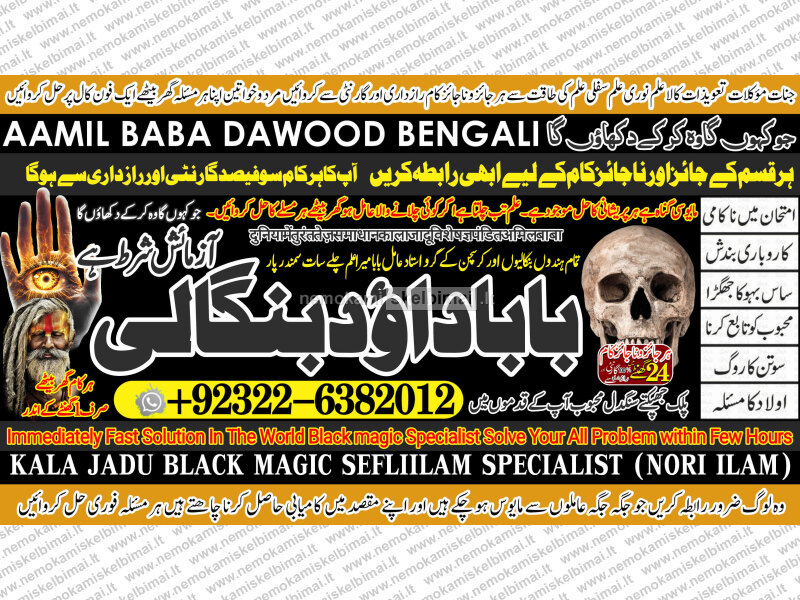 Amil Baba Dawood Bangali { PAK: 0322-6382012 ---- UAN: 0092-322-6382012} is a renowned spiritual healer and master of ancient occult sciences, specializing in Black Magic, Sephi Ilam, Nori Ilam, and Voodoo Spells. With decades of experience in the mystical arts, he has gained a reputation as a powerful and trusted guide for those seeking solutions to life's most challenging problems.