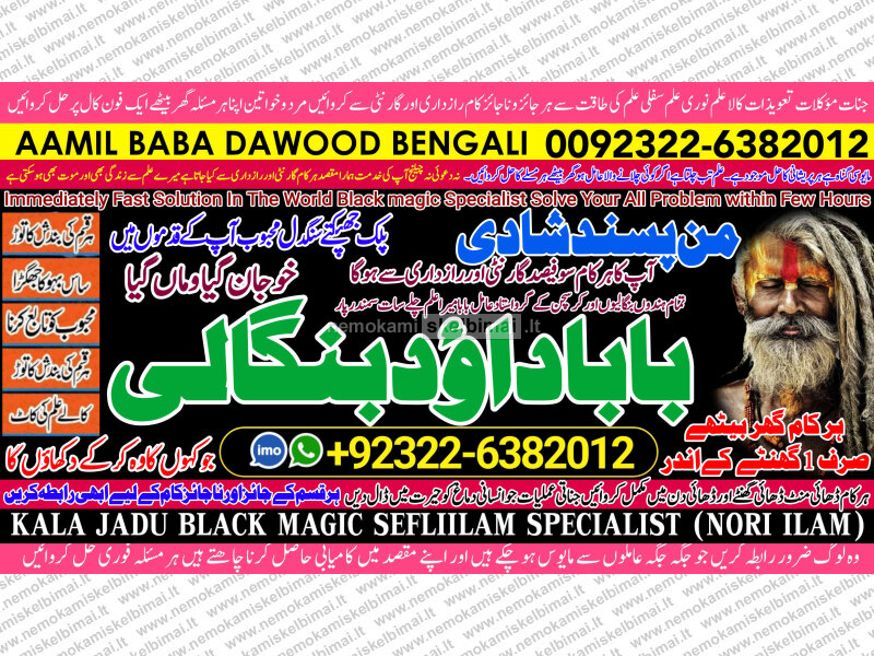 Amil Baba Dawood Bangali { PAK: 0322-6382012 ---- UAN: 0092-322-6382012} is a renowned spiritual healer and master of ancient occult sciences, specializing in Black Magic, Sephi Ilam, Nori Ilam, and Voodoo Spells. With decades of experience in the mystical arts, he has gained a reputation as a powerful and trusted guide for those seeking solutions to life's most challenging problems.
