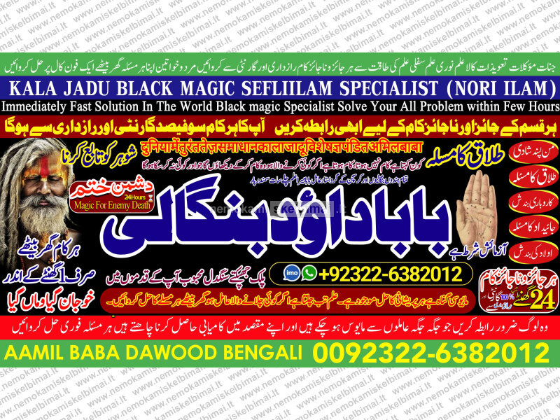Amil Baba Dawood Bangali { PAK: 0322-6382012 ---- UAN: 0092-322-6382012} is a renowned spiritual healer and master of ancient occult sciences, specializing in Black Magic, Sephi Ilam, Nori Ilam, and Voodoo Spells. With decades of experience in the mystical arts, he has gained a reputation as a powerful and trusted guide for those seeking solutions to life's most challenging problems.