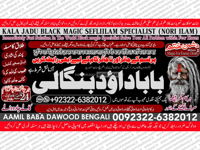 Amil Baba Dawood Bangali { PAK: 0322-6382012 ---- UAN: 0092-322-6382012} is a renowned spiritual healer and master of ancient occult sciences, specializing in Black Magic, Sephi Ilam, Nori Ilam, and Voodoo Spells. With decades of experience in the mystical arts, he has gained a reputation as a powerful and trusted guide for those seeking solutions to life's most challenging problems.
