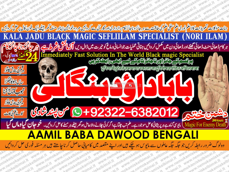 Amil Baba Dawood Bangali { PAK: 0322-6382012 ---- UAN: 0092-322-6382012} is a renowned spiritual healer and master of ancient occult sciences, specializing in Black Magic, Sephi Ilam, Nori Ilam, and Voodoo Spells. With decades of experience in the mystical arts, he has gained a reputation as a powerful and trusted guide for those seeking solutions to life's most challenging problems.