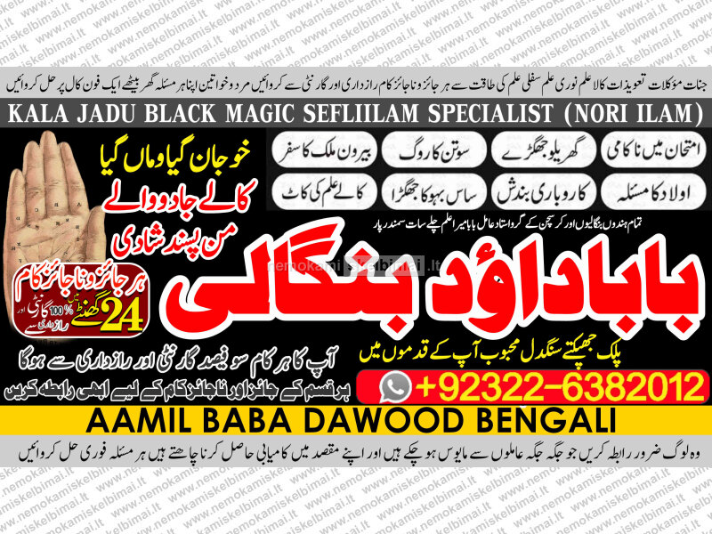 Amil Baba Dawood Bangali { PAK: 0322-6382012 ---- UAN: 0092-322-6382012} is a renowned spiritual healer and master of ancient occult sciences, specializing in Black Magic, Sephi Ilam, Nori Ilam, and Voodoo Spells. With decades of experience in the mystical arts, he has gained a reputation as a powerful and trusted guide for those seeking solutions to life's most challenging problems.