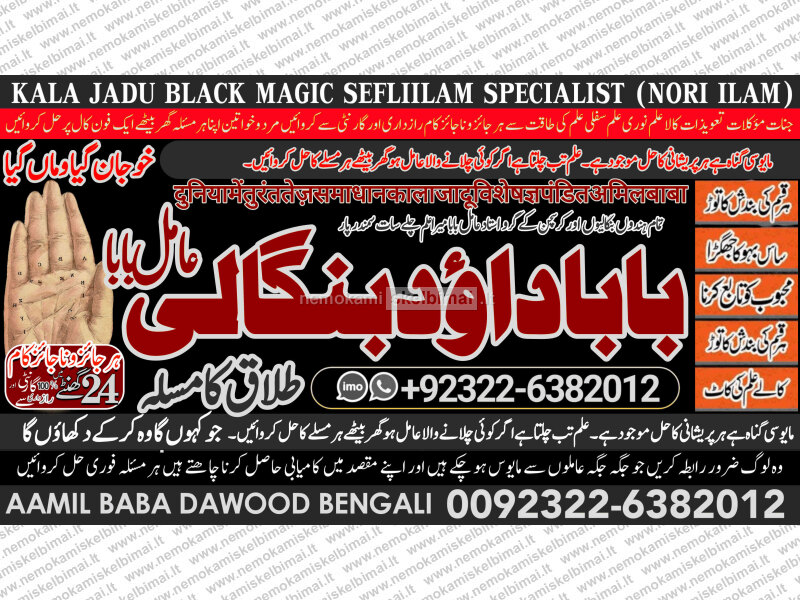 Amil Baba Dawood Bangali { PAK: 0322-6382012 ---- UAN: 0092-322-6382012} is a renowned spiritual healer and master of ancient occult sciences, specializing in Black Magic, Sephi Ilam, Nori Ilam, and Voodoo Spells. With decades of experience in the mystical arts, he has gained a reputation as a powerful and trusted guide for those seeking solutions to life's most challenging problems.