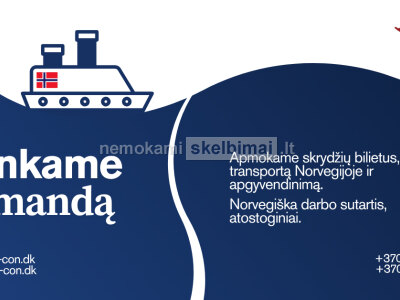 Valandinį atlyginimą 250-270 NOK, priklausomai nuo patirties