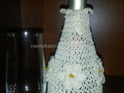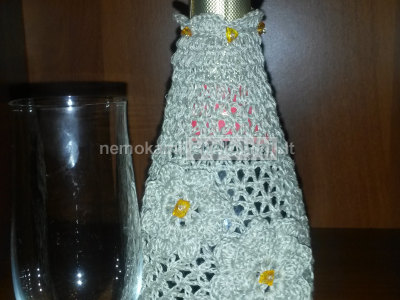 Nertos labai puošnios lininės ir papuoštos gintariukais dekoracijos buteliams.