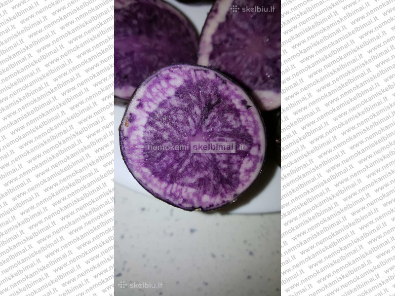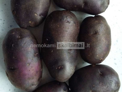 Ekologiškai ( visiškai nenaudojant jokių pesticidų, herbicidų ir cheminių trąšų) auginamos mėlyniosios bulvės VITLOTTE.