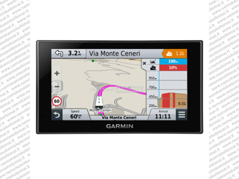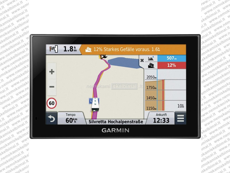 - Rodomi įspėjimai apie kelio tilto aukštį, svorio ribas, staigius posūkius, stačius nuolydžius esančius Jūsų maršrute;