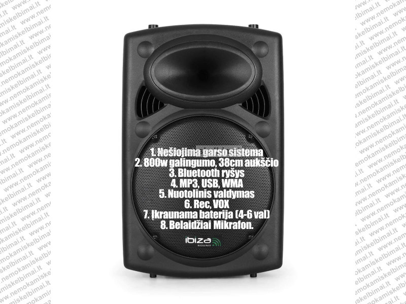 Nešiojima garso sistema, 800w galimgumo, bluetooth, WMA, USB, MP3,REC, VOX, nuotolinis valdymas, įkraunama baterija, belaidžiai mikrafonai
