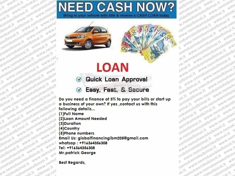 Do you need a finance at 3% to pay your bills or start up a business of your own? If yes ,contact us with this following details...