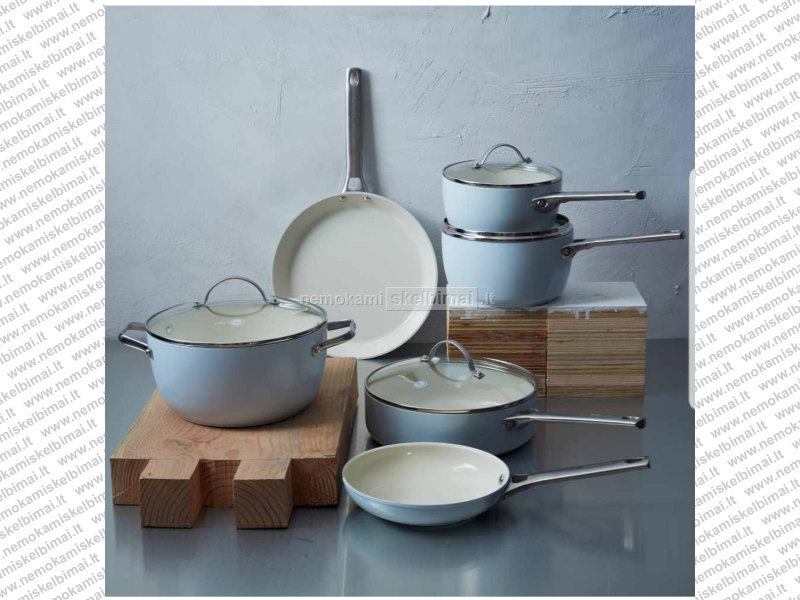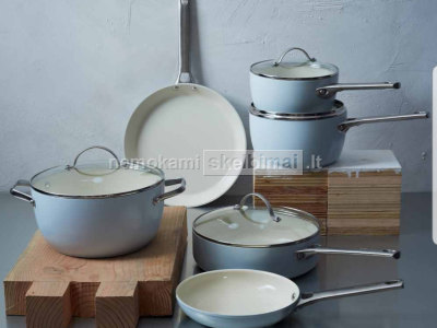 Naujas puodu ir keptuviu rinkinys greenpan, dengti keramika.