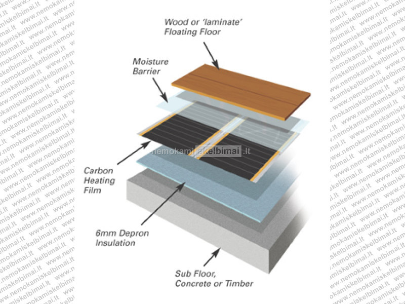 Naujos anglies-vario ir polimero lydinio plėvelės, įdirbtos po grindų danga, paverčia Jūsų buto (vonios kambario, halės, vaikų kambario, terasos, balkono ir kt.) grindis dideliu radiatoriumi, kurio šildymui naudojama elektros energija. Daugiau nieko nereikia, tiktai palaikyti komfortinę temperatūrą (22-36C), bet, jeigu pageidaujate, įmanoma ir daugiau! Jūsų grindys visuomet bus šiltos ir sausos.