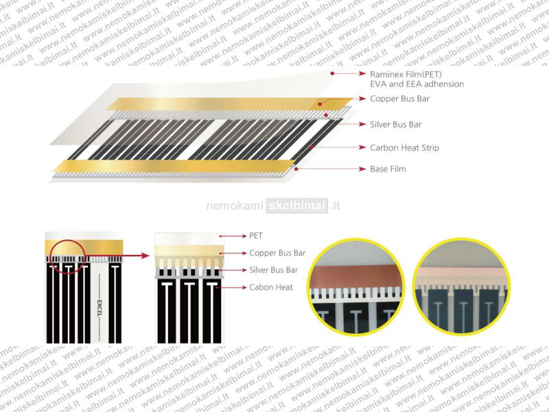 Grindų šildymo plėvelė - tiktai 0,3 mm storio, kloja po bet kuria grindų danga: laminato, plytelių, kilimine, medienos. 10-50% ekonomija!