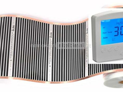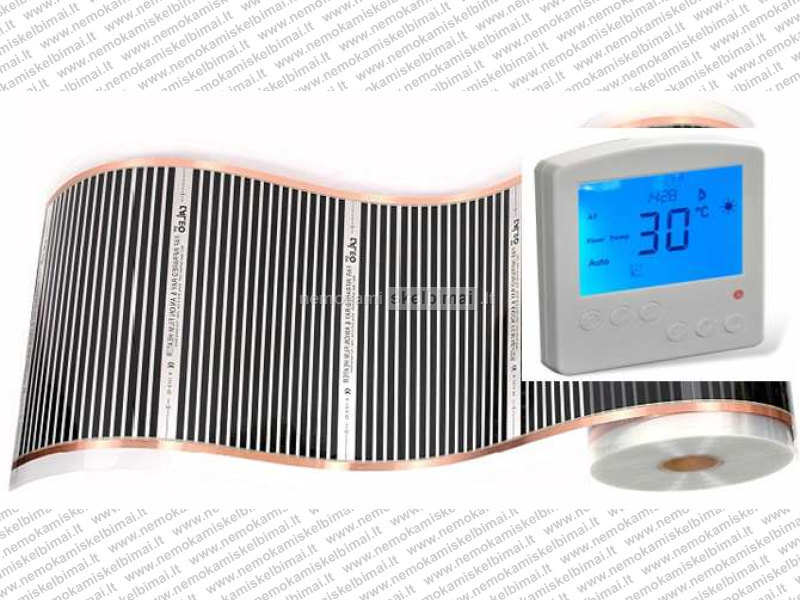Grindų šildymo plėvelė (plotis 50cm), 220V, 480W/kv.m. Kaina 1 kv.m -- 22.00 EUR/m2.