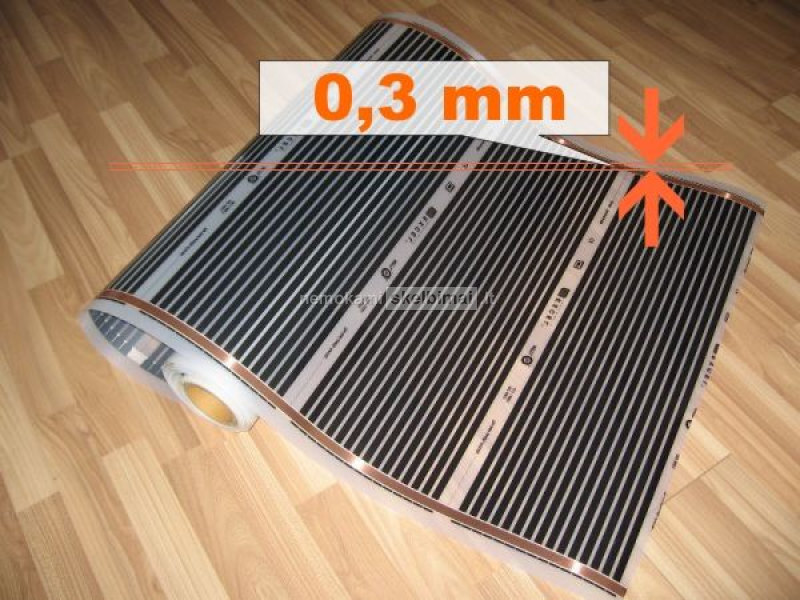 Grindų šildymo plėvelė - tiktai 0,3 mm storio, kloja po bet kuria grindų danga: laminato, plytelių, kilimine, medienos. 10-50% ekonomija!