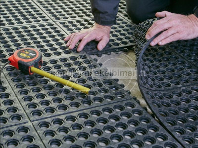 Guminių kilimėlių matmenys: 12 x 914 x 914 mm, tarpusavyje sujungiami.
