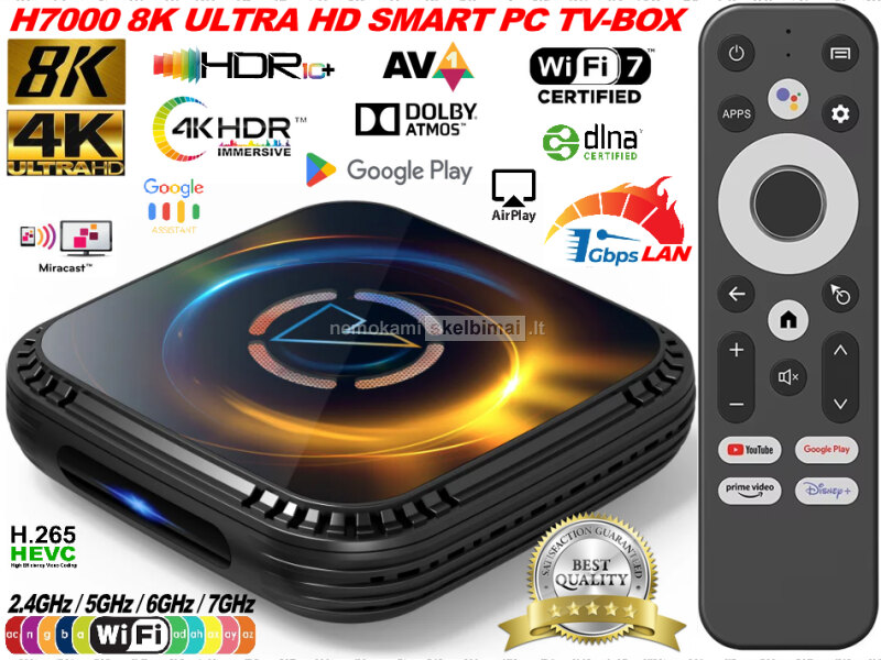 NAUJAUSIAS 2026 METŲ MODELIS! - AUKŠTOS KOKYBĖS, BRENDINIS, ORIGINALUS, SERTIFIKUOTAS, ITIN GALINGAS IR SPARTUS, IŠMANUSIS TV-IMTUVAS - H7000 8K ULTRA HD SMART PC TV-BOX