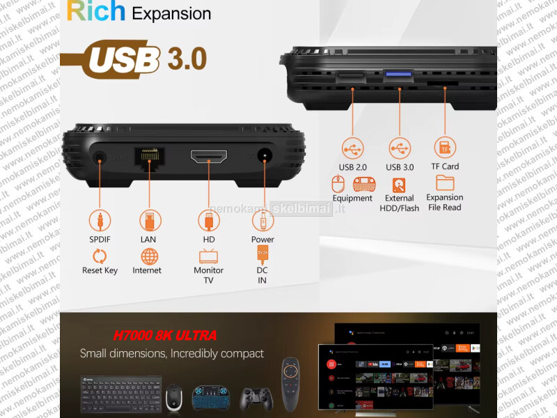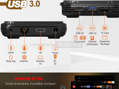 - H7000 8K ULTRA HD SMART PC TV-BOX GALI PAKEISTI JŪSŲ NAMŲ KOMPIUTERĮ. PRIJUNGĘ KLAVIATŪRĄ, PELYTĘ AR NET GARSO KOLONĖLES PAVERSITE JĮ ĮPRASTU NAMŲ KOMPIUTERIU.