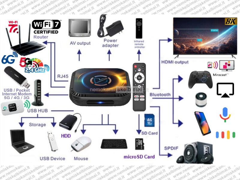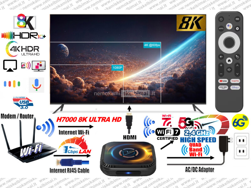 H7000 8K ULTRA TV - BOX VIRŠ 2000 GOOGLE TV KANALŲ NEMOKAMAI