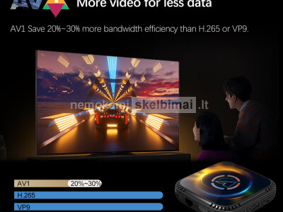 - Vaizdo failų kodavimas - DOLBY VISION, HDR 10+, AV1, 8K ULTRA HD/6K/4K/2K/Full HD, HEVC, Vivid World + HDR, VP9, 4K Ultimate HD, H.265,