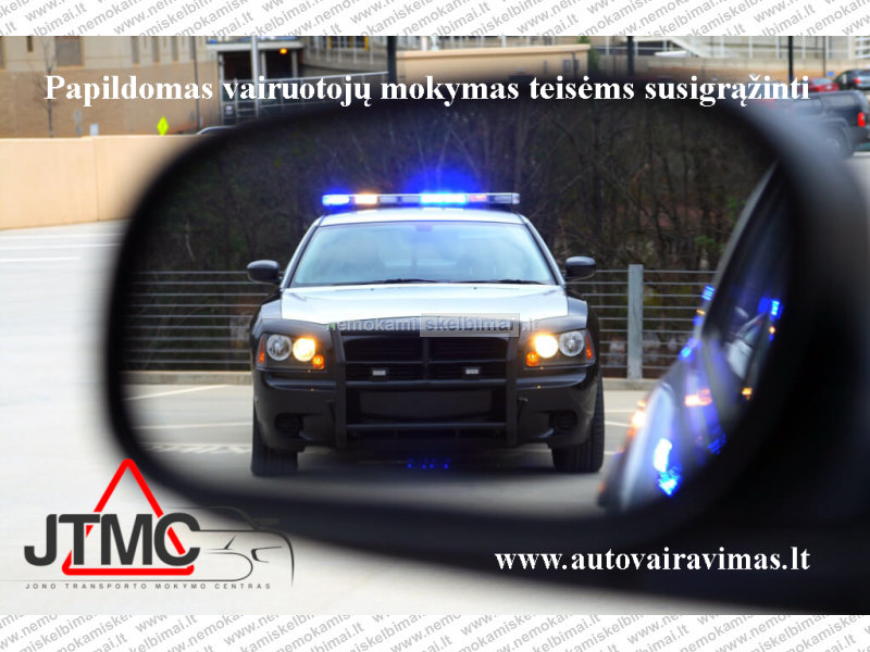 Taip pat rengiame papildomas vairuotojų mokymus teisėms susigrąžinti (reikalinga išankstinė registracija tel. 8 5 2619027, 8 606 02610). Mokymo vieta: Verkių g.43 Vilnius (Žirmūnai)