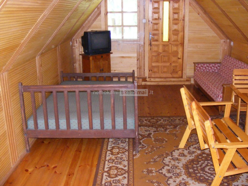 Pirmame sio pastato aukste yra kambarys su zidiniu ir virtuve (saldytuvas , dujine virykle, visi reikalingi indai bei stalo irankiai ir t.t.)