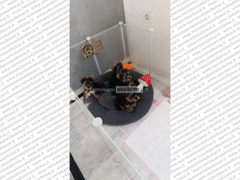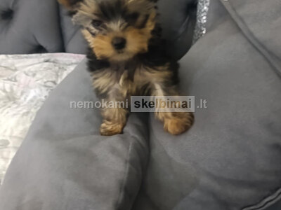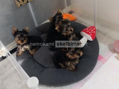 Siūlomi mini Jorkšyro terjero šuniukai, turintys puikią kilmę.
