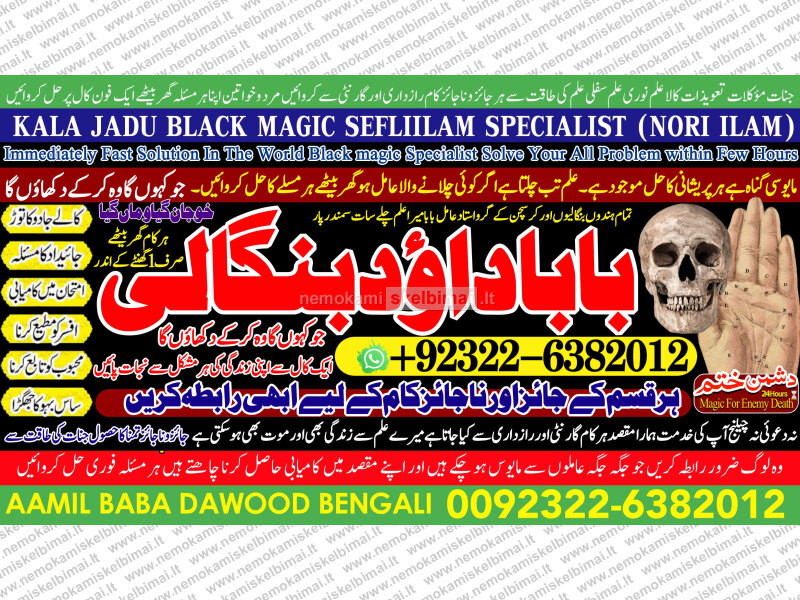 Amil Baba Dawood Bangali { PAK: 0322-6382012 ---- UAN: 0092-322-6382012} is a renowned spiritual healer and master of ancient occult sciences, specializing in Black Magic, Sephi Ilam, Nori Ilam, and Voodoo Spells. With decades of experience in the mystical arts, he has gained a reputation as a powerful and trusted guide for those seeking solutions to life's most challenging problems.