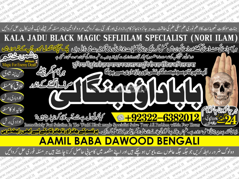 Amil Baba Dawood Bangali { PAK: 0322-6382012 ---- UAN: 0092-322-6382012} is a renowned spiritual healer and master of ancient occult sciences, specializing in Black Magic, Sephi Ilam, Nori Ilam, and Voodoo Spells. With decades of experience in the mystical arts, he has gained a reputation as a powerful and trusted guide for those seeking solutions to life's most challenging problems.