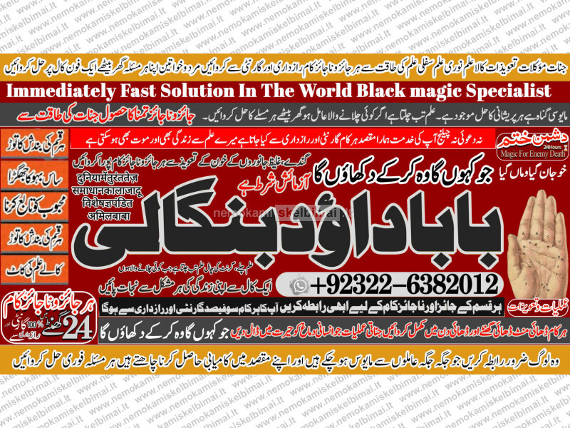 Amil Baba Dawood Bangali { PAK: 0322-6382012 ---- UAN: 0092-322-6382012} https://amilbabadawoodbengali.com/ is a renowned spiritual healer and master of ancient occult sciences, specializing in Black Magic, Sephi Ilam, Nori Ilam, and Voodoo Spells. With decades of experience in the mystical arts, he has gained a reputation as a powerful and trusted guide for those seeking solutions to life's most challenging problems.