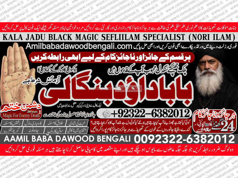 Amil Baba Dawood Bangali { PAK: 0322-6382012 ---- UAN: 0092-322-6382012} https://amilbabadawoodbengali.com/ is a renowned spiritual healer and master of ancient occult sciences, specializing in Black Magic, Sephi Ilam, Nori Ilam, and Voodoo Spells. With decades of experience in the mystical arts, he has gained a reputation as a powerful and trusted guide for those seeking solutions to life's most challenging problems.