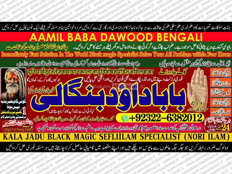 Amil Baba Dawood Bangali { PAK: 0322-6382012 ---- UAN: 0092-322-6382012} is a renowned spiritual healer and master of ancient occult sciences, specializing in Black Magic, Sephi Ilam, Nori Ilam, and Voodoo Spells. With decades of experience in the mystical arts, he has gained a reputation as a powerful and trusted guide for those seeking solutions to life's most challenging problems.