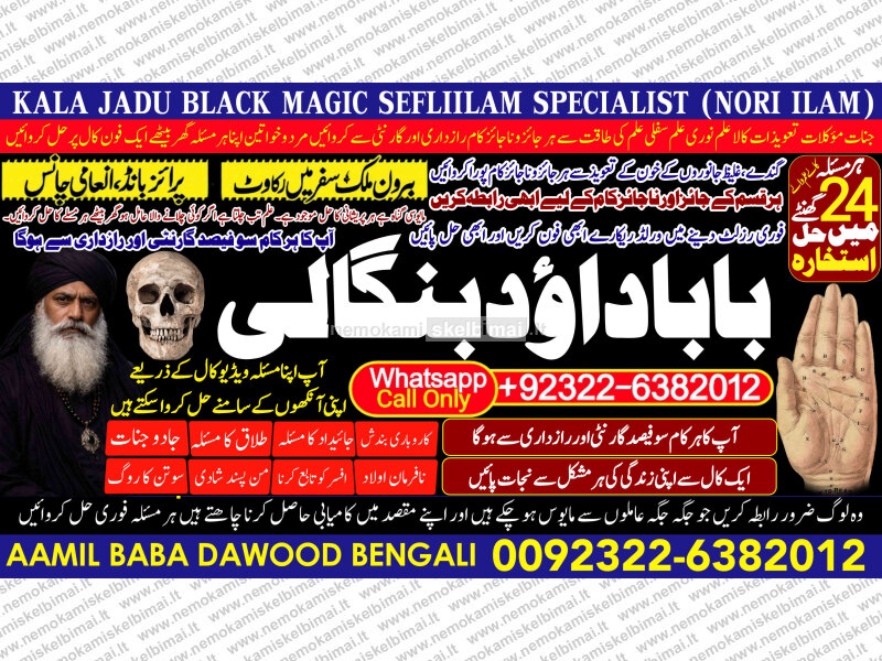 Amil Baba Dawood Bangali Contact on whatsapp +92322-6382012 is a renowned spiritual healer and master of ancient occult sciences, specializing in Black Magic, Sephi Ilam, Nori Ilam, and Voodoo Spells. With decades of experience in the mystical arts, he has gained a reputation as a powerful and trusted guide for those seeking solutions to life's most challenging problems.