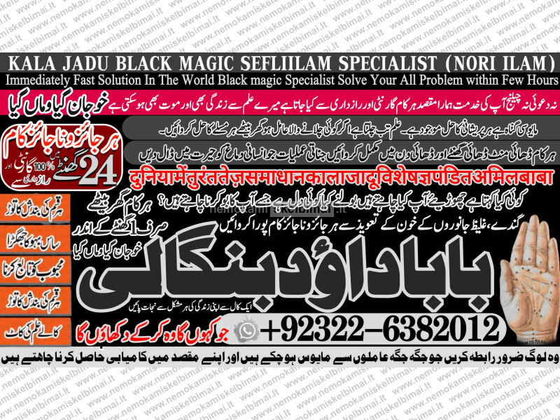 Amil Baba Dawood Bangali { PAK: 0322-6382012 ---- UAN: 0092-322-6382012} is a renowned spiritual healer and master of ancient occult sciences, specializing in Black Magic, Sephi Ilam, Nori Ilam, and Voodoo Spells. With decades of experience in the mystical arts, he has gained a reputation as a powerful and trusted guide for those seeking solutions to life's most challenging problems.