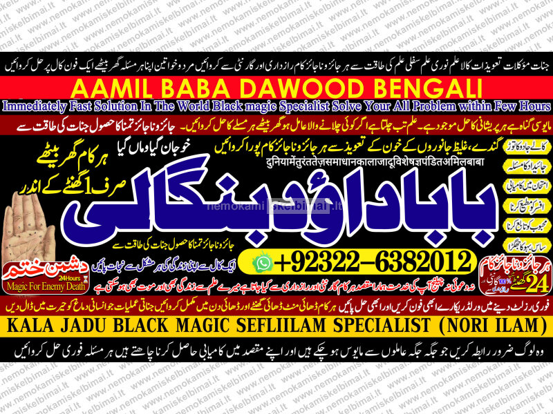 Amil Baba Dawood Bangali { PAK: 0322-6382012 ---- UAN: 0092-322-6382012} is a renowned spiritual healer and master of ancient occult sciences, specializing in Black Magic, Sephi Ilam, Nori Ilam, and Voodoo Spells. With decades of experience in the mystical arts, he has gained a reputation as a powerful and trusted guide for those seeking solutions to life's most challenging problems.
