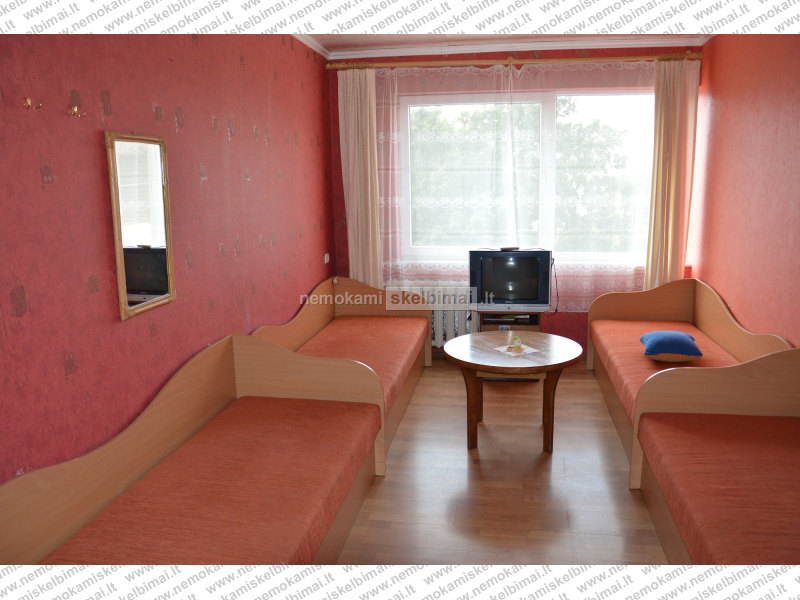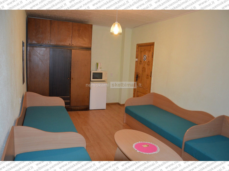 Nuomos kaina 3 asmenims 9 Eur/para asmeniui keturviečiame kambaryje.