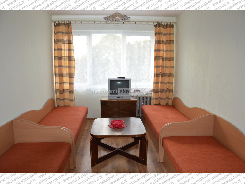 Nuomos kaina 4 asmenims keturviečiame kambaryje ir gyvenant nepertraukiamai 20 ar daugiau parų : 7 Eur/ para asmeniui.