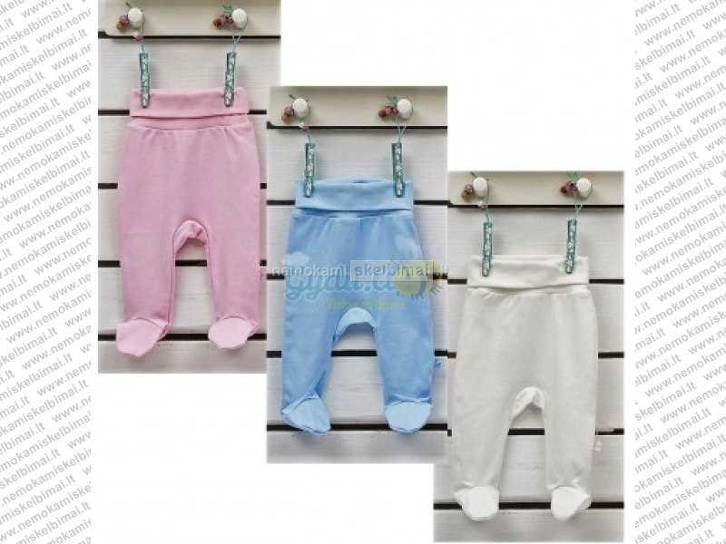 Kelnytės kūdikiui, su pėdutėmis, melsvos, rožinės ir kreminės spalvos plačiu juosmeniu, tad nespaus kūdikio pilvelio. Pagaminta Ukrainoje. 100% medvilnė. Dydžiai ir asortimentas www.gydu.lt