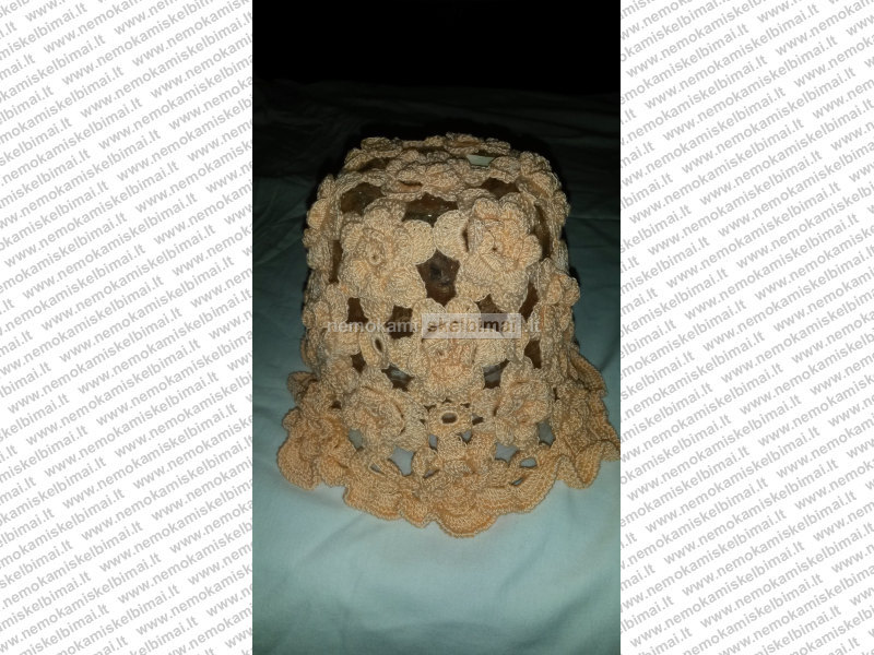 Turiu ir dar galiu pagal pageidavimą nunerti jums norimos spalvos ir dydžio .Dabar turiu ružavų ,oranžinės spalvos , persiko spalvos , pilkų , karamelinės spalvos, baltos , margų , trispalvių įvairių dudžių vasarinių kepuryčių.