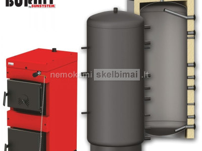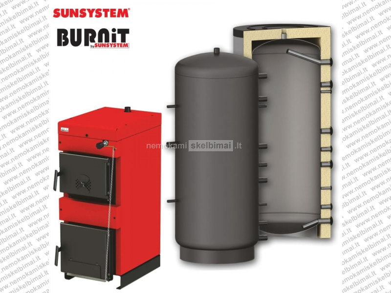 Kieto kuro katilas Burnit WB 25 kW su P 1000 litrų akumuliacine talpa Sunsystem
