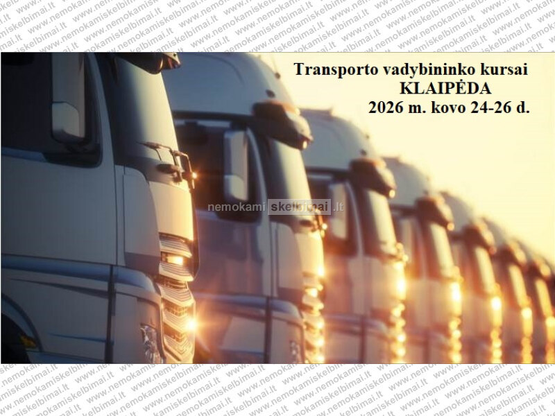 Klaipėdoje 2026 m. sausio 27-29 d. organizuojami TIKSLINIAI transporto vadybininko kursai pasiruošti transporto vadybininko egzaminui, kuris laikomas Lietuvos transporto saugos administracijoje.
