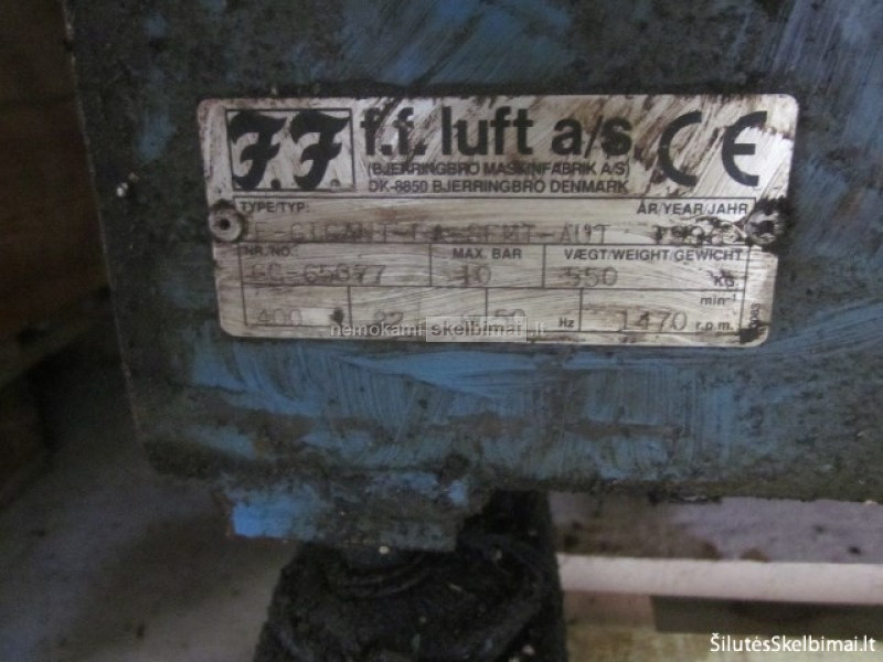 parduodamas galingas kompresorius su nusausinimo sistema . pagaminti danijoje pats variklis voketijoje . skirti pramonei . be oro talpyklu . firma /pavadi.-FF Gigant 1030 22 kW .10 baR