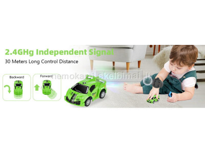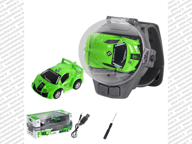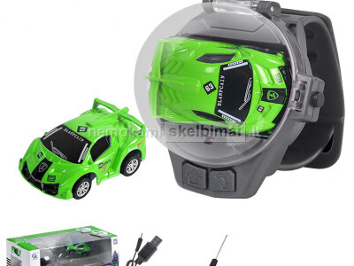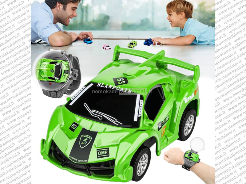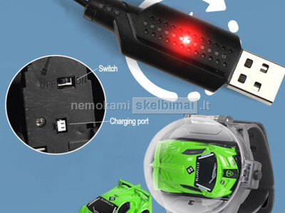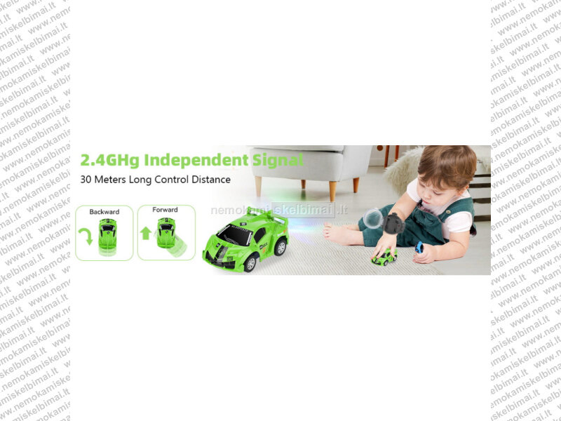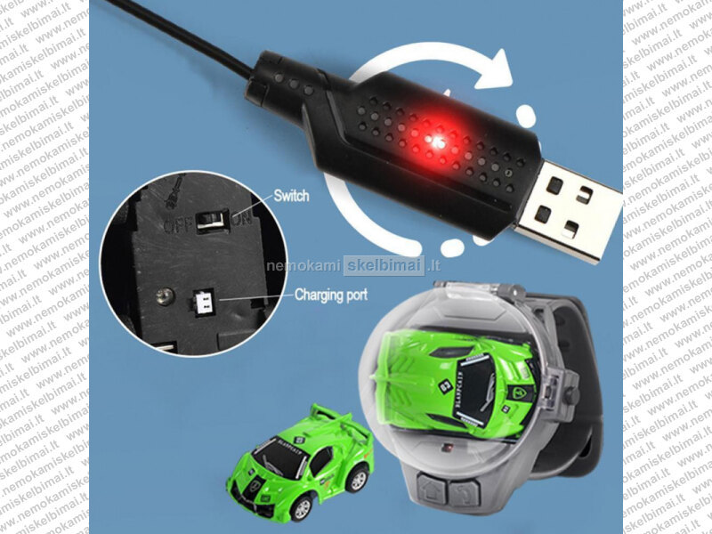 Naujiena - laikrodis su įmontuotu nuimamu mini RC automobiliu! Itin patogus naudojimas, mašinėlė valdoma su tuo pačiu laikrodžiu. Nuotolinio valdymo pultas ypač patogus vaikams - valdymas tik dviem mygtukais, automobilis gali judėti į priekį ir atbuline eiga į kairę. Reguliuojamas, iš minkštos gumos pagamintas dirželis tinka įvairaus diametro vaiku rankoms. Tai puiki dovana tiek berniukams, tiek mergaitėms! 2.4G infraraudonųjų spindulių nuotolinio valdymo pultas užtikrina stabilų signalą ir turi apsaugą nuo trikdžių, nesupainioja nuotolinio valdymo, jei kelios transporto priemonės lenktyniauja kartu.
