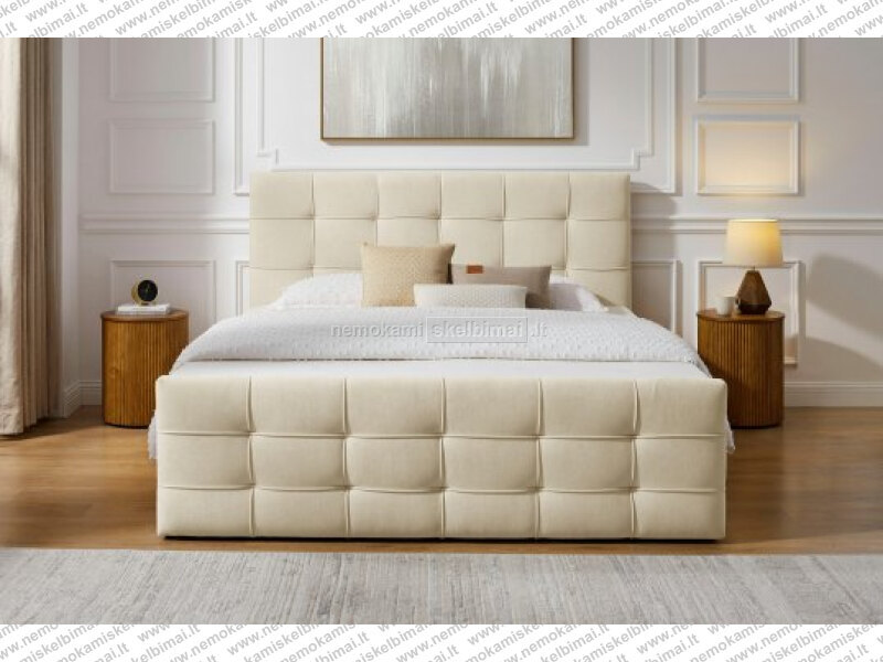 Lova dengta audiniu,lova turi iš šonu atsidarančias dideles patalynės dėžes.Lovos komplektuojamos su čiužiniu.Lova aukšta patogi atsikelti įvairaus amžiaus žmonėms.